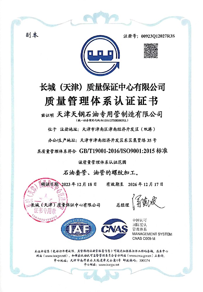 天津天鋼石油專用管制造有限公司(以下簡(jiǎn)稱天鋼石油)是專業(yè)生產(chǎn)高端石油專用管、割縫篩管、復(fù)合篩管及接箍的企業(yè),公司座落在天津市津南經(jīng)濟(jì)開(kāi)發(fā)區(qū),緊靠外環(huán)線,東臨天津港(13公里),距天津機(jī)場(chǎng)20公里,鐵路10公里,交通便利,地理?xiàng)l件優(yōu)越。   天鋼石油自1997年成立以來(lái),依靠自身實(shí)力不斷發(fā)展,目前已投資建設(shè)了天津美津鋼管有限公司、天津?yàn)I海天成石油鉆采器材有限公司,現(xiàn)有員工300余人,占地200余畝。   公司擁有雄厚的制造與開(kāi)發(fā)能力,年產(chǎn)套管、油管30萬(wàn)噸,接箍200萬(wàn)只。公司具備一流的實(shí)驗(yàn)及檢測(cè)設(shè)備與手段,獨(dú)立的實(shí)驗(yàn)室及技術(shù)中心,匯集了一批石油專用管行業(yè)的科研和生產(chǎn)精英,目前已成功開(kāi)發(fā)出行業(yè)領(lǐng)先水準(zhǔn)的TG-QMI系列;TTSP-1系列;TTSP-2系列和割縫管;復(fù)合篩管。在國(guó)內(nèi)外油田使用,受到了客戶的廣泛好評(píng)。   天鋼石油堅(jiān)持以人為本,客戶至上的經(jīng)營(yíng)管理理··· ...